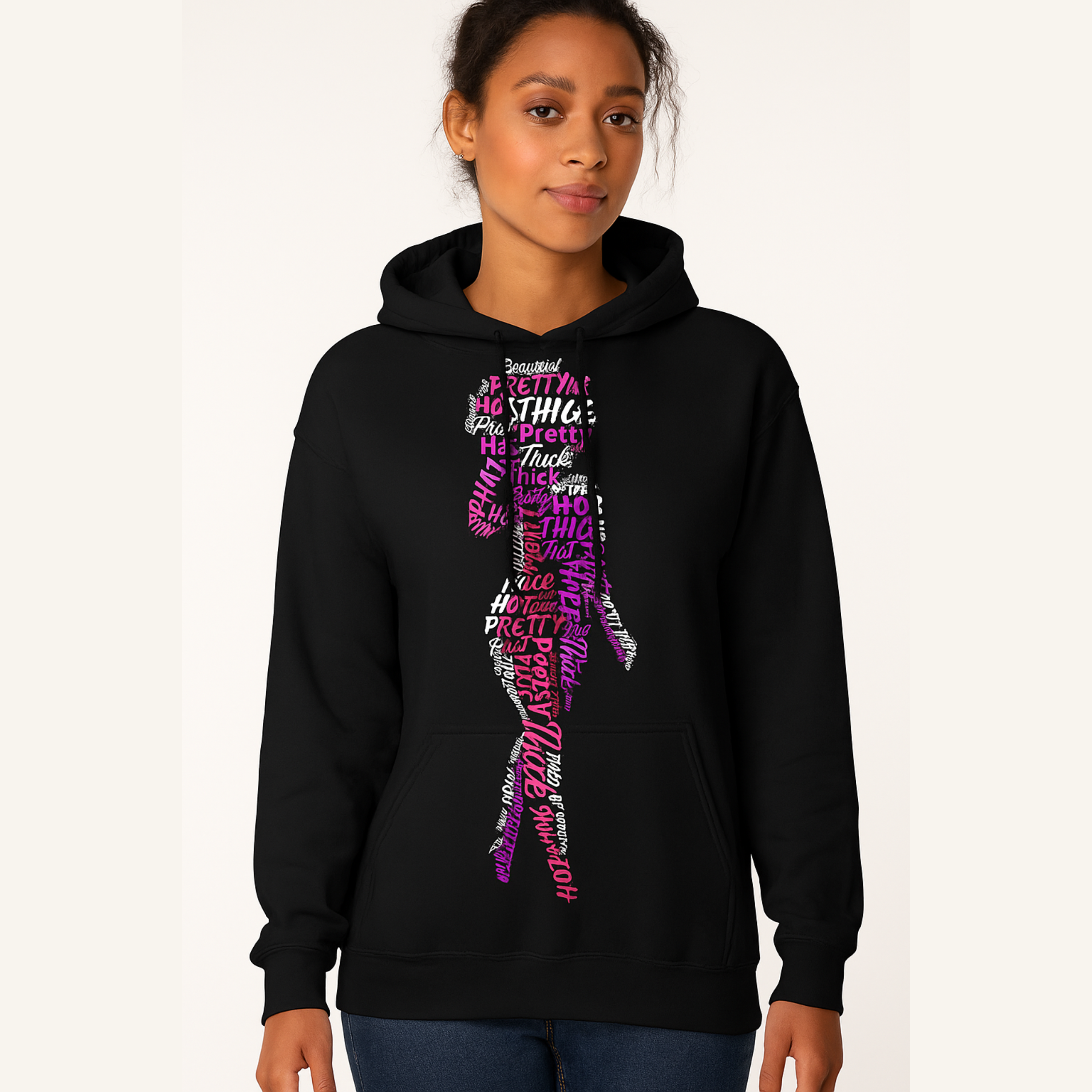 - Black hoodie with front pouch pocket